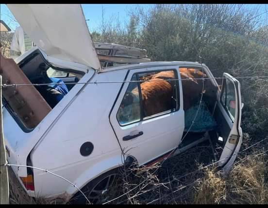 Sa Trucker Twitter પર Not Sure How This Accident Really Happened Was The Cow In The Car Or It Was Hit By The Car And Ended Up Where It Is In The
